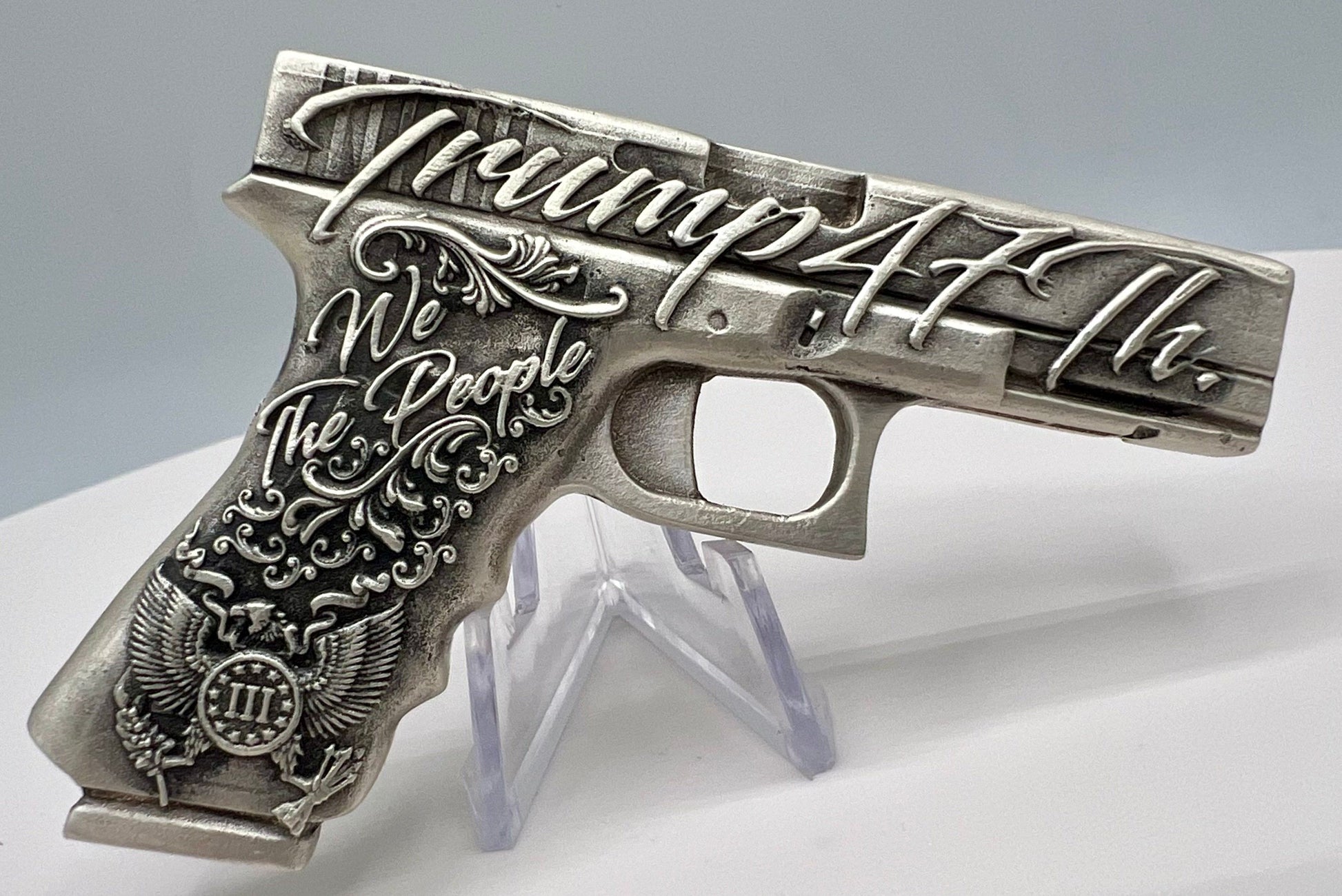 2024 We the People Trump G-19 Pistol shaped Poured 4 oz Silver Bar in Card by Locker Mint (470 Mintage)